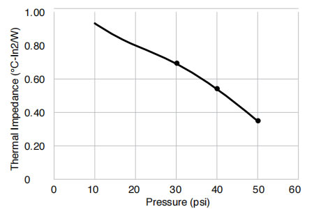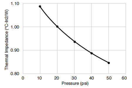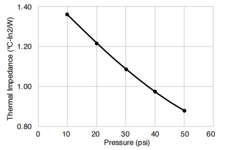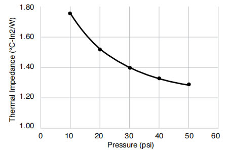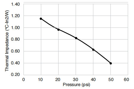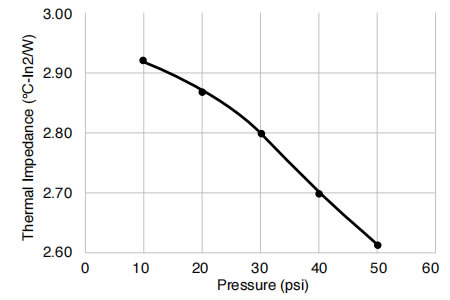 物理性能 試驗結(jié)果 試驗方法 顏色 綠色 目視 厚度 10-100 mil(0.25-2.5mm) ASTM D374 硬度(肖氏OO級) 60 ASTM D2240 體積電阻率(Ω·cm) >4.0x1012 ASTM D257 導(dǎo)熱率(W/m·K)@20psi 1.13 ASTM D5470 絕緣擊穿電壓(VAC) >4.5kV ASTM D149(1 類) 阻燃性 V-0 UL94 基體聚合物 硅橡膠 - -